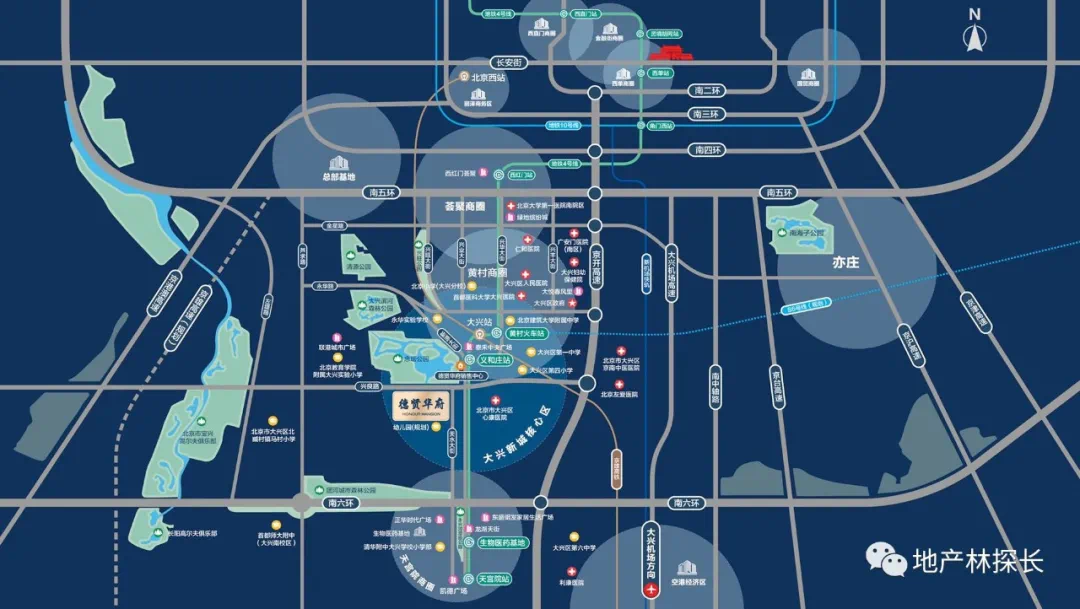 德贤华府靠近南六环,东侧2公里处是双源桥,京开高速与南六环交汇处,从项目出发,不堵车的情况下,20分钟左右便可到达南三环,收费6元。项目在自驾方面相对来说还算方便,在轨道交通方面就要差些意思了,虽然项目距离4号线1000米左右,但距离项目最近的地铁义和庄站和生物医药基地站都在2.5公里--3公里,项目不算地铁盘,对于需要依靠地铁出行的人士来说并不友好。