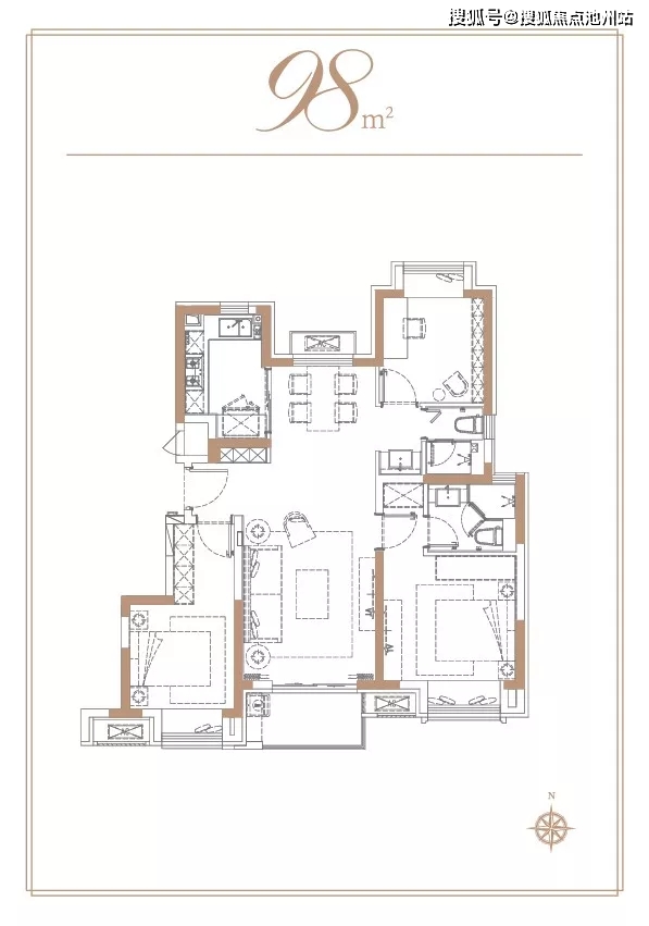 同时,约98㎡的三个卧室都带有飘窗,光线和通透性也是没话说,更将室外的三寸日光雕琢出变幻的美感,延伸出别具一格的空间。敲黑板划重点,这也是该户型的又一亮点,为居住者提供了优质的视野,在市面上非常少见。