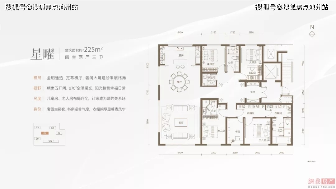 石榴春和景明共提供三种户型,分别是155㎡、180㎡和225㎡。主要户型图如下:155㎡三室两厅两卫