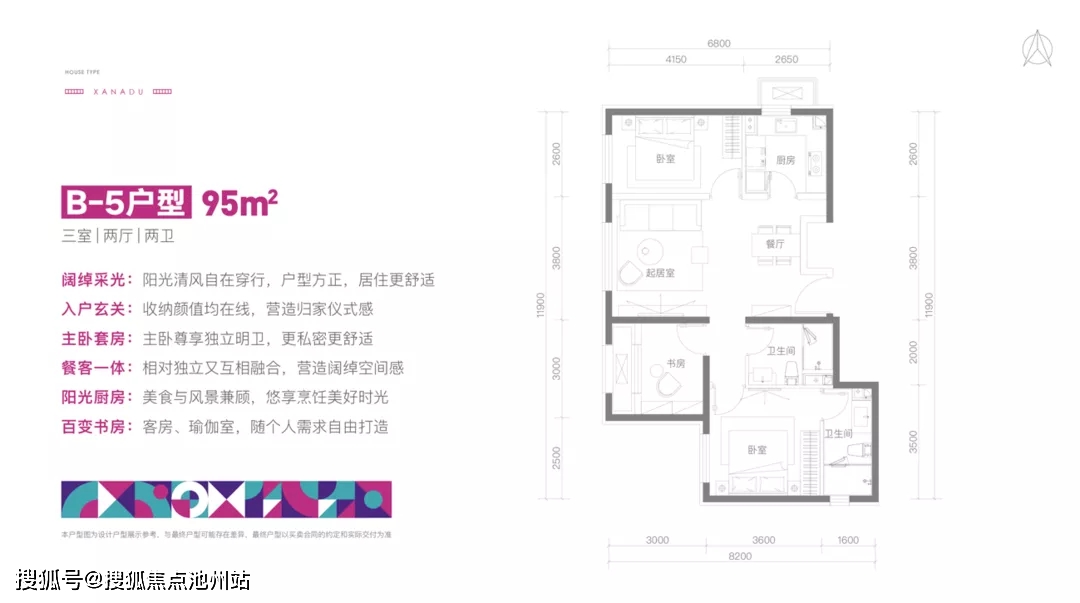 住宅总规划3栋楼,总户数为358户,最北侧为1#楼27层,最南侧为2#楼为11层和27层混合,3#楼为5层洋房产品,整体建筑成半围合式设计。面积区间在71-120的两居到四居,主力户型为100㎡左右的三居。9大超配户型,户型设计强调“全生命周期”的设计理念,满足都市全家庭居住需求。主力产品为98-110㎡的三居,其中98平米的三面宽南北三居、103平边户双面宽南北三居,另有110平三面采光三居。