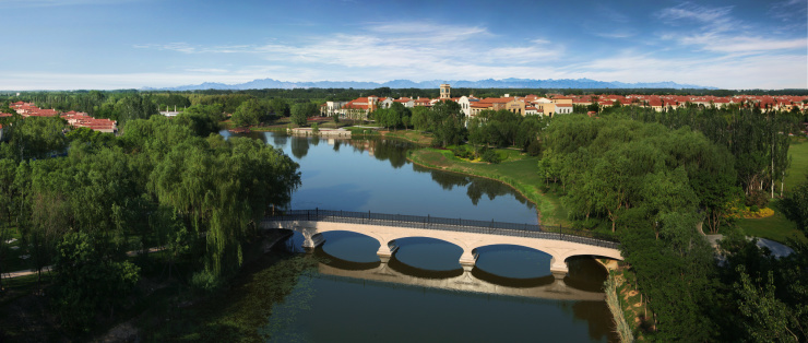 环境:东郊湿地公园、温榆河生态走廊环伺,3公里老河湾穿流而过,享24万平米天然水域,综合容积率仅0.3,绿化率高达70%。