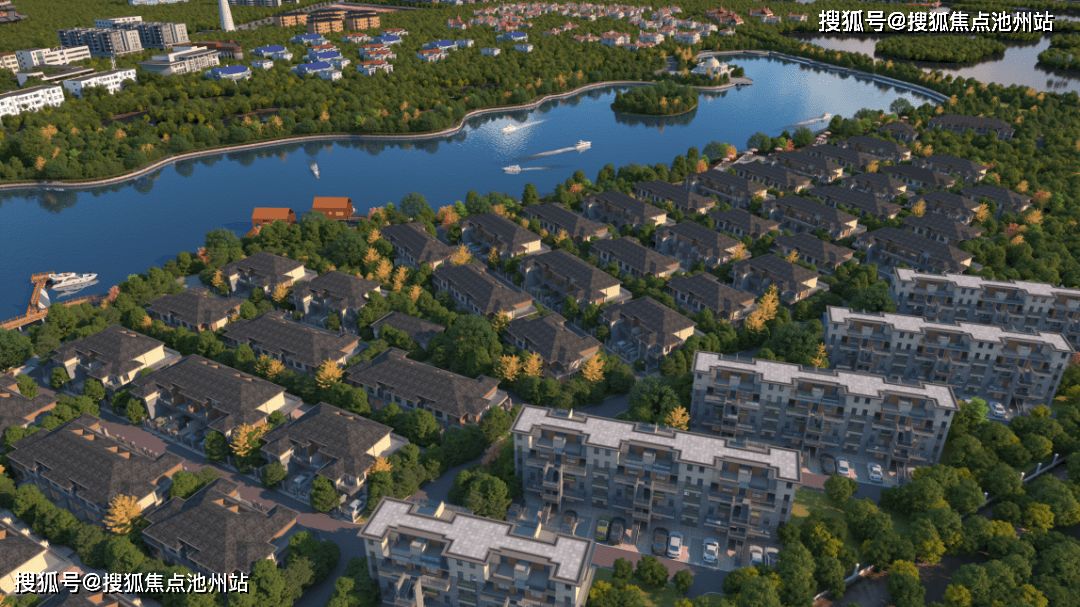 【大美园林】现代典雅园林,布局滨水栈道、沿湖健康跑道、游船码头、阳光草坪等