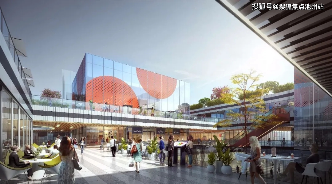 圆环向三层纵向引流,四个出入口和数不清的动线设计,还有多重大面积花园式阳台/退台设计。通过长距电梯,一层可随时直达顶层开敞空间。商场巧妙地利用这种“环抱式”格局,使得商业空间和公共空间融为一体。