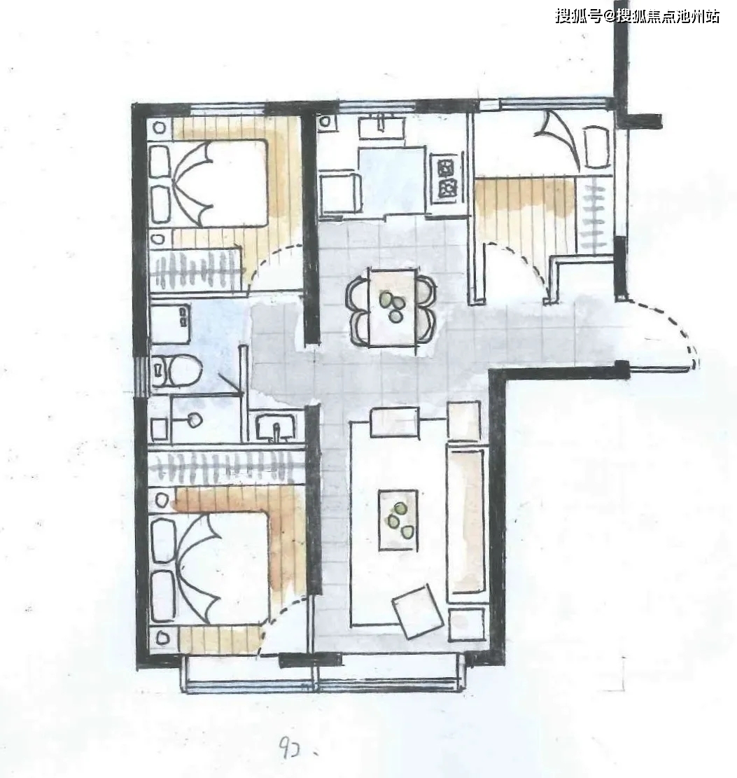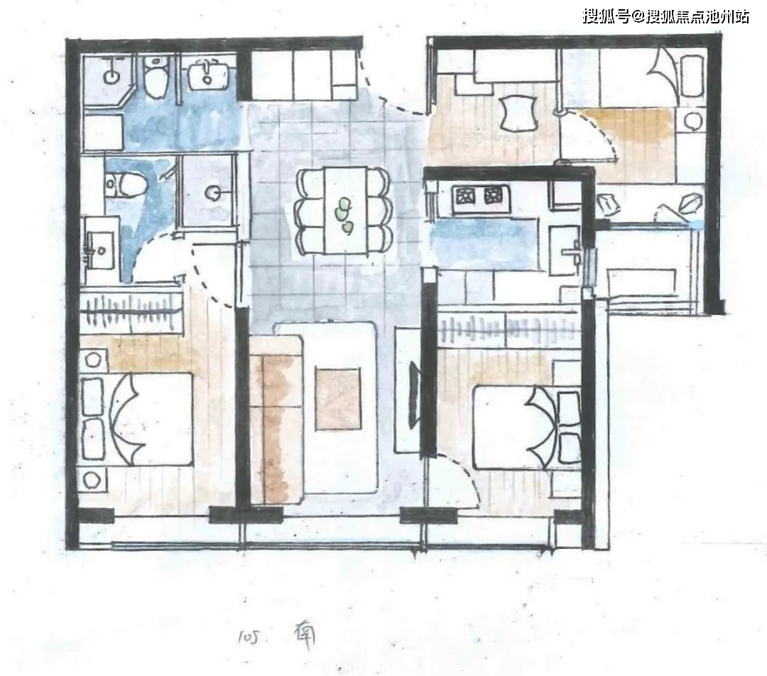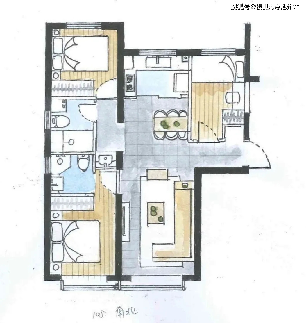 约105平米三居,南北通透,全明设计。主卧套房设计,带一个明卫,餐客厨一体化。这种小三居舒适度比较好,估计也会很抢手。