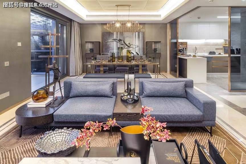 此外,客厅面宽做到6m,餐客厅整体进深做到6.5m,形成了一个奢阔的餐客一体化空间,有利于家庭日常的交流、互动和亲朋聚会。