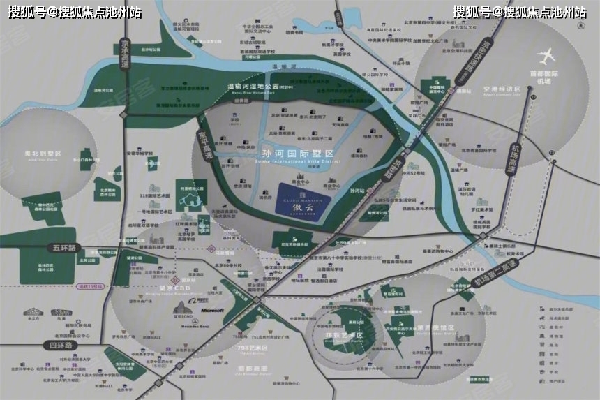 生态环境:项目北侧规划中斥资15亿打造的温榆河生态走廊,占地44平方公里,面积相当于6.5个奥森公园、15个朝阳公园,现已开工;板块内10万平米中心湖景正在建设中,湖水域源头就来自于温榆河支流,成为板块周边天然的氧吧,调节着周边的空气湿度与温度,西侧 3年内将建造一个两倍于奥森公园的沙子营湿地公园。