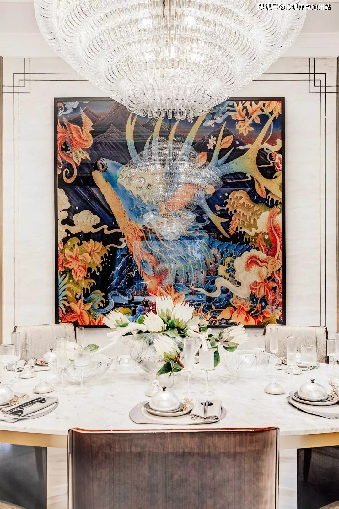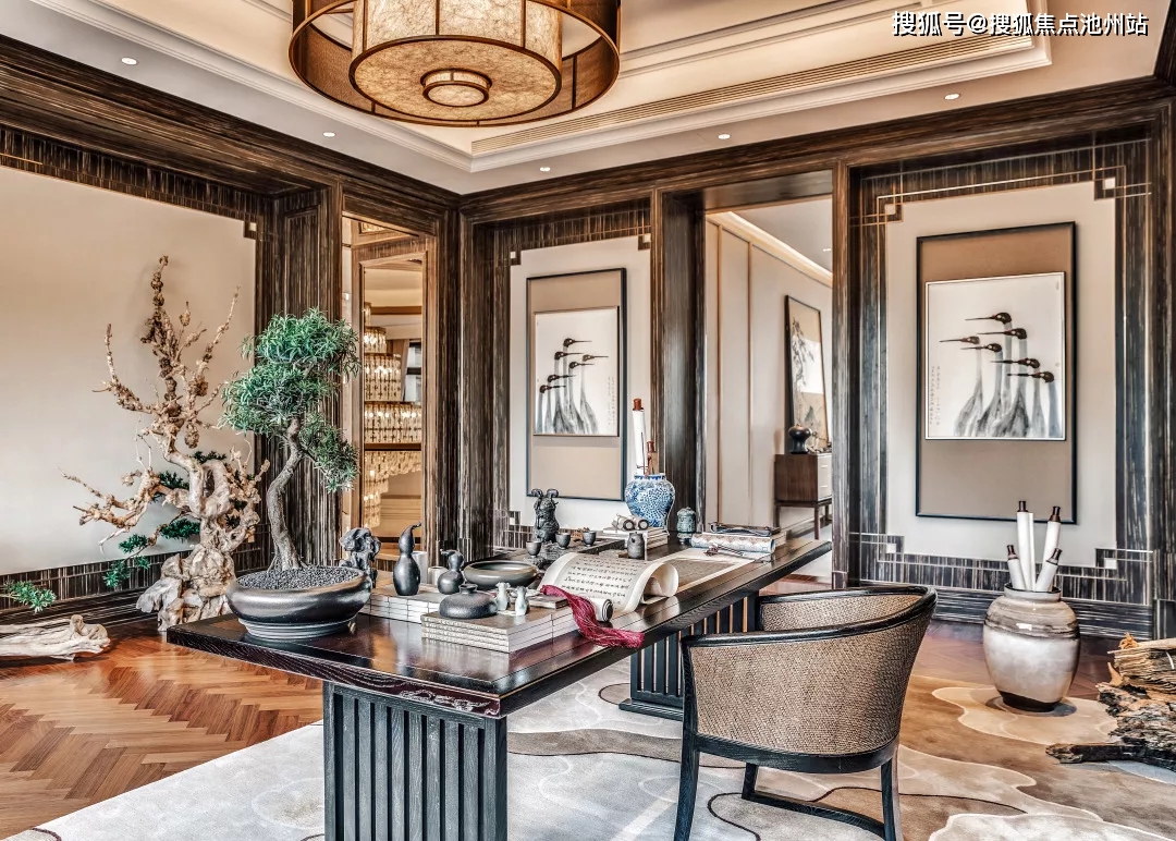 樾长安“天煜”户型沿用世界流行的中国风做为画稿底色,借鉴西式设计手法,并采用现代时尚的装饰语汇,使纹样、材质、图案、线条等丰富而具象的实体表现在空间中得以充分的碰撞与融合。