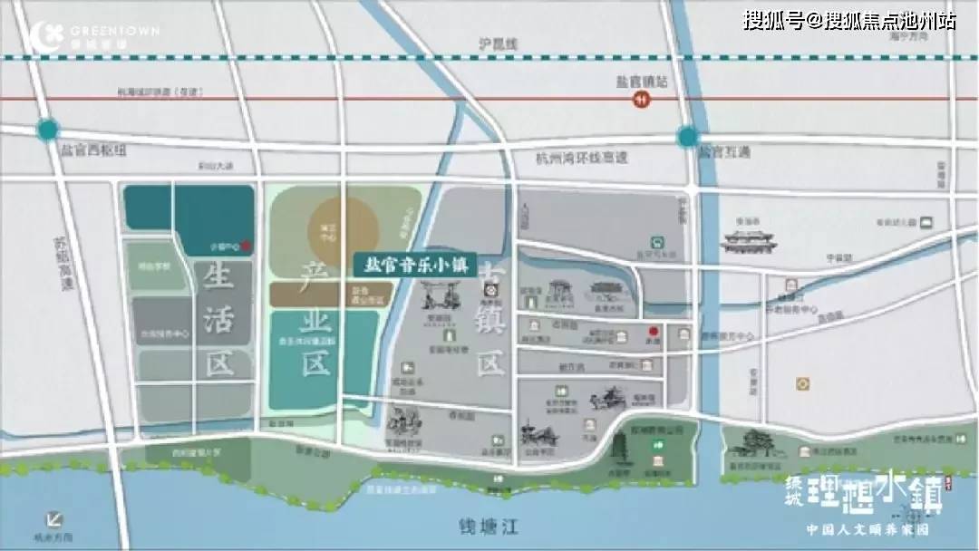 盐官古城4A级国家旅游度假区、围绕江南小镇自然、人文优势,加之独特的钱塘潮文化和区域优势,结合音乐产业和绿城服务,打造集“住、食、养、乐、行”为一体的理想水镇生活体系,引入小镇中心、幼儿园、九年制音乐特色学校等,营造中式合院、花园洋房、景寓三大产品序列,为现代人提供高品质的古城音乐慢生活,书写以自然生活为景、人文艺术为心的归心之所。