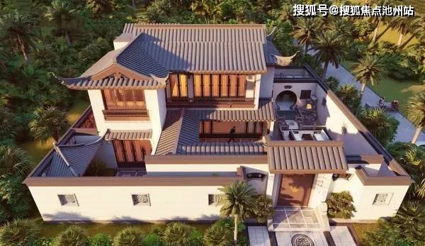 新中式建筑总体而言可以归纳为两大派系: 北方的合院派和南方的园林派。整体建筑形象可用“粉墙黛瓦”来形容,如同中国水墨画,淡丽清雅,诗意油然而生! 北方的合院派建筑在外观上采用了北京四合院的灰色坡屋顶、筒子瓦及一定高度的墙院围合方式;材质上多选用地域色彩浓厚的灰砖,形成雄浑、宏大的气势;空间结构上则是尽可能多地设计庭院空间,以追求四合院的全包围形式。