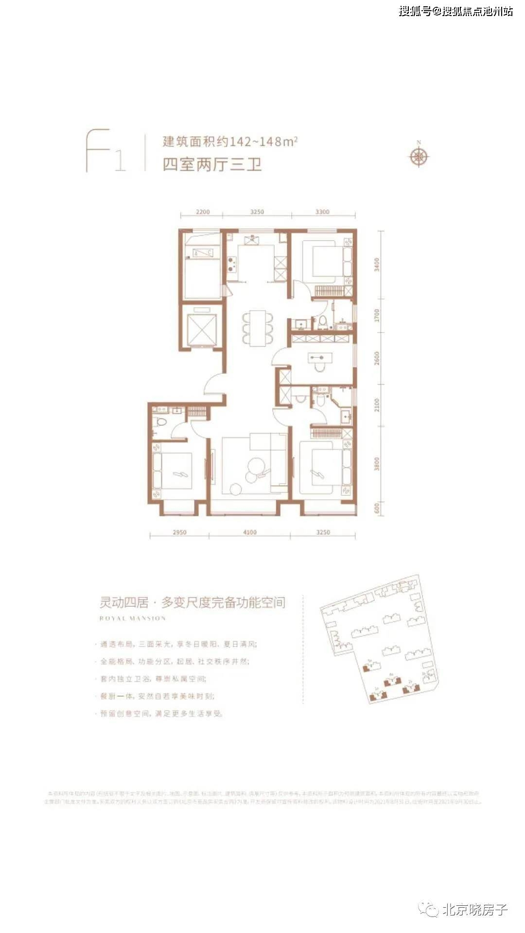 【样板间】:140左右平南北通透四居,95平左右纯南三居(未开)