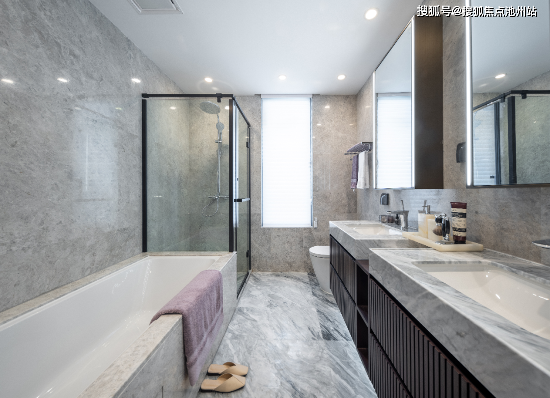 而诸如汉斯格雅的抽拉式龙头、花岗岩大理石水槽,摩恩特制的厕纸架等国际大牌部品,澜园也一应俱全。