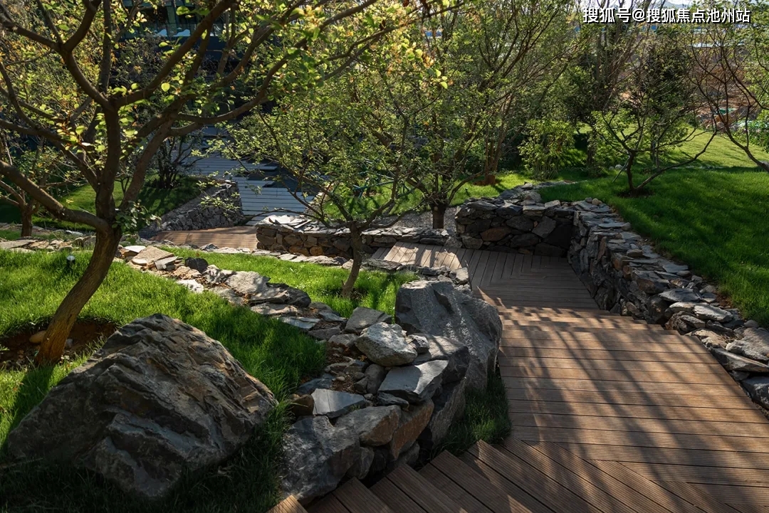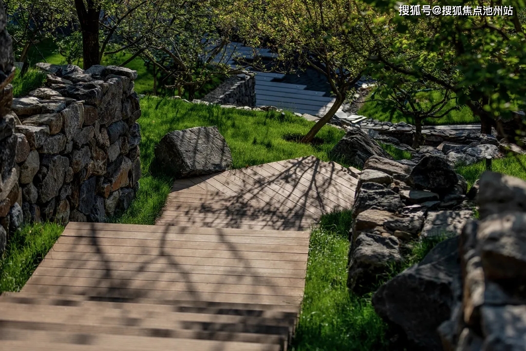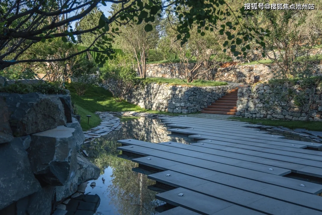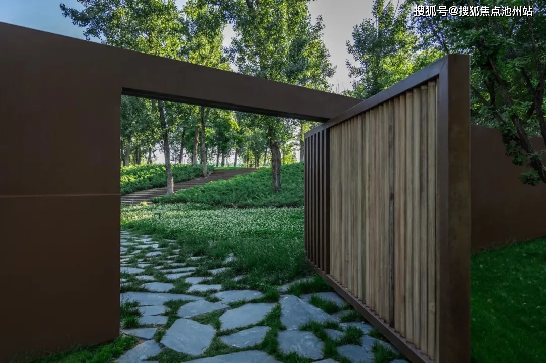 生态自然的物料使用、现代简约的线条构成,弱化、消减了边界的约束和限定,以低影响开发的手法将景观融于现状,进入场地变得那么自然而然。