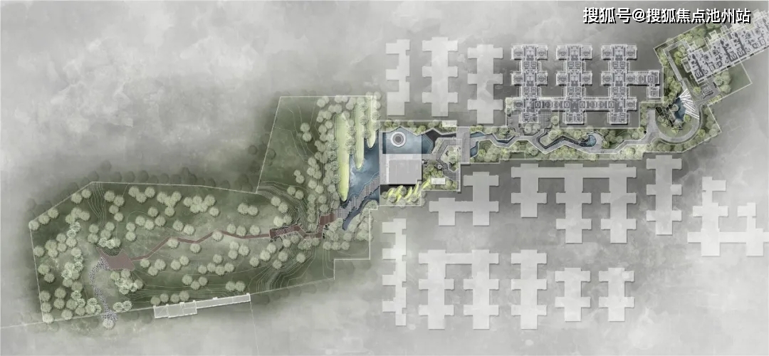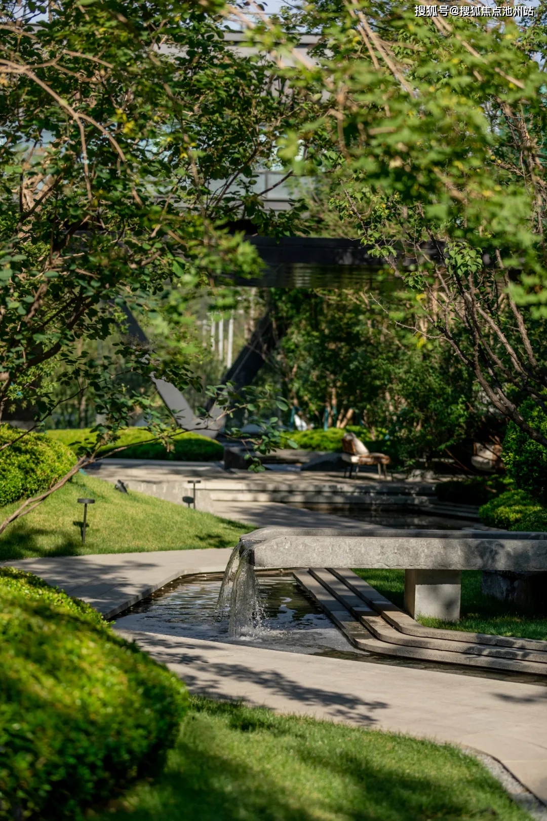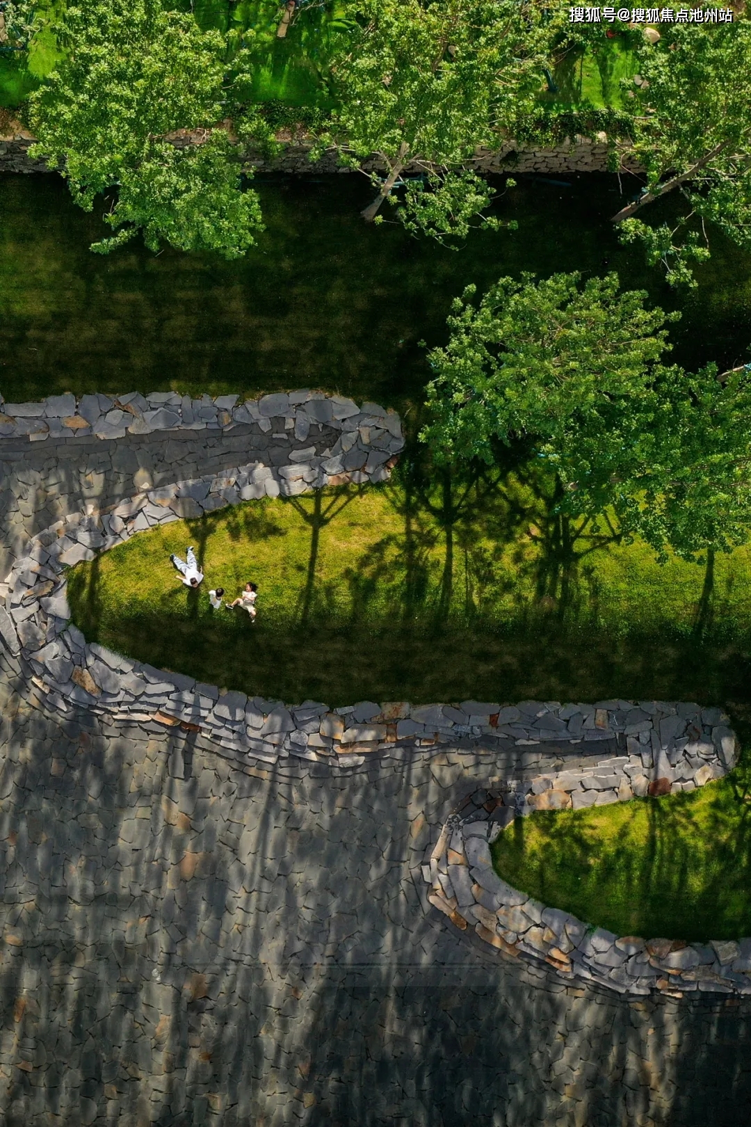 溪,以轮廓的变幻嵌合着植物与铺装,自然灵动;