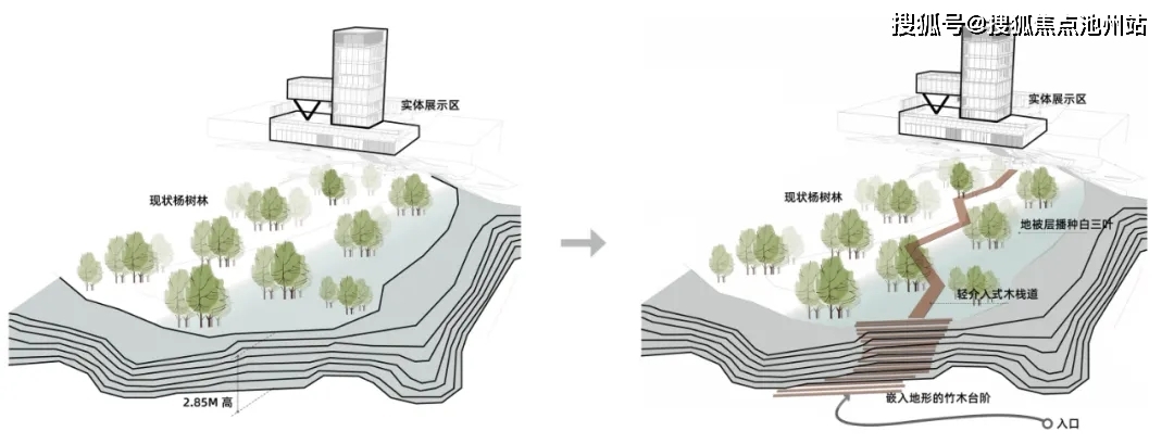 两者贯彻“让景观融于自然”的低影响开发理念,充分保留原有场地自然环境与特色,并在此基础上为地块带来新的价值。