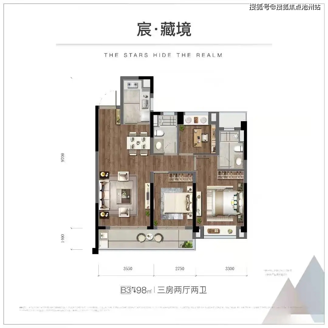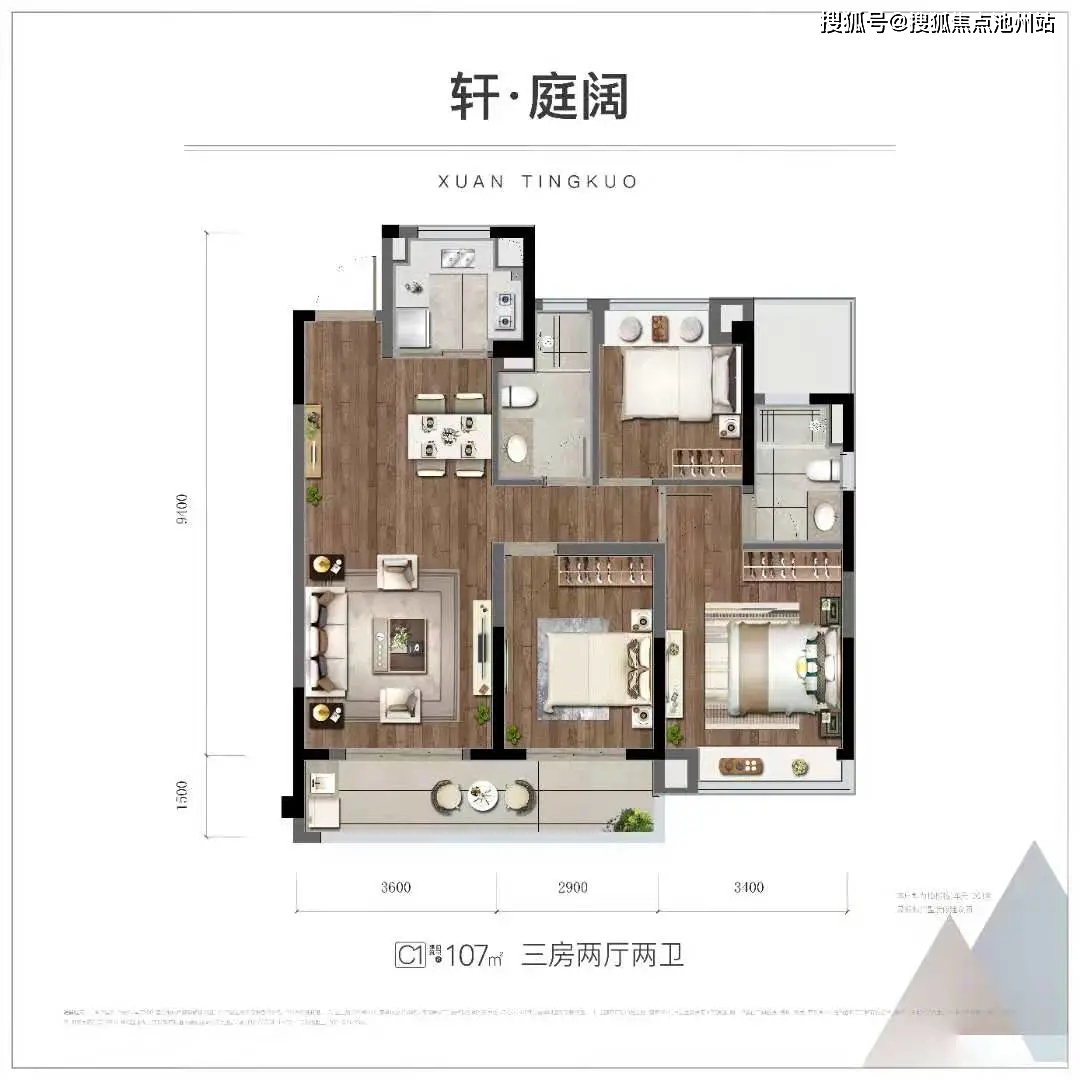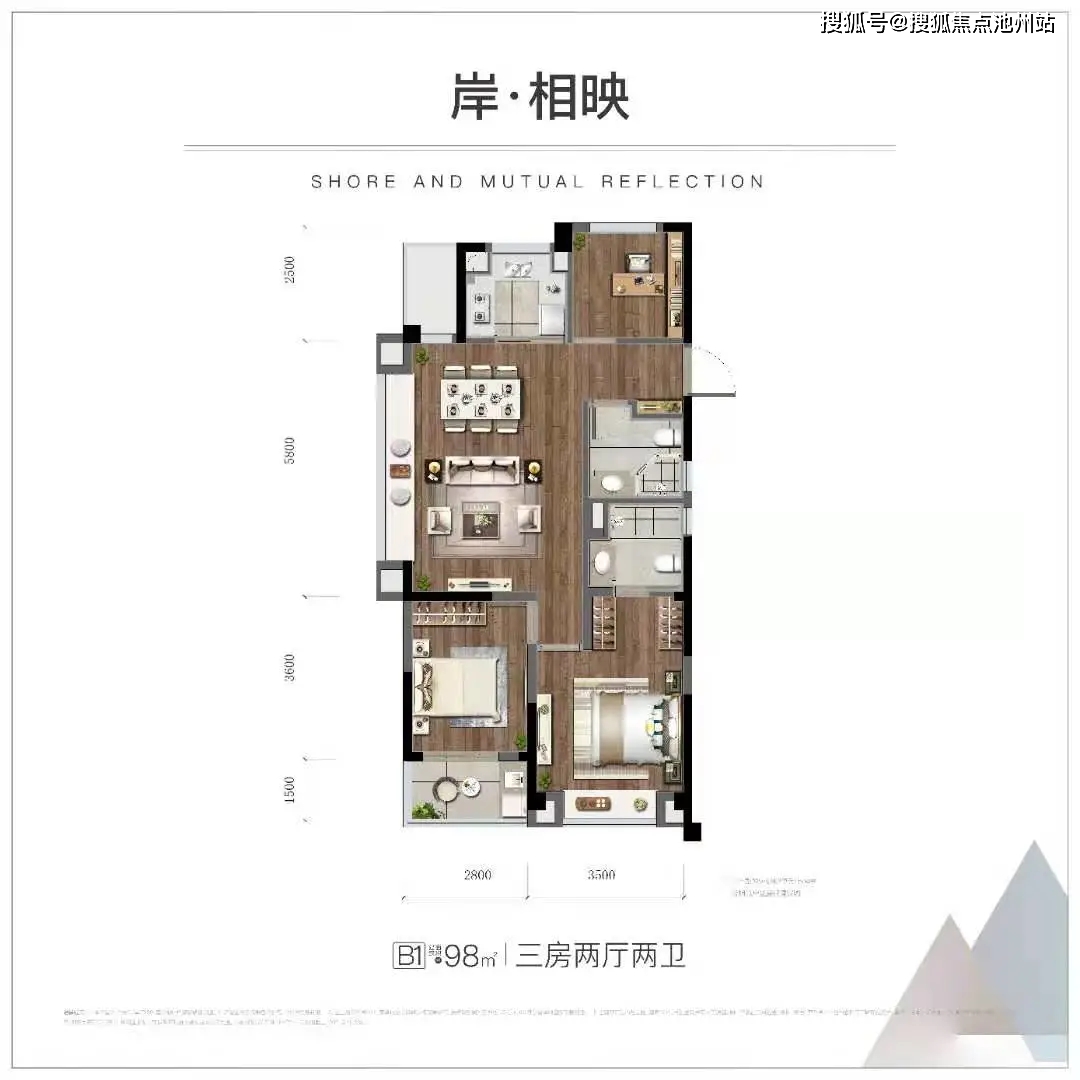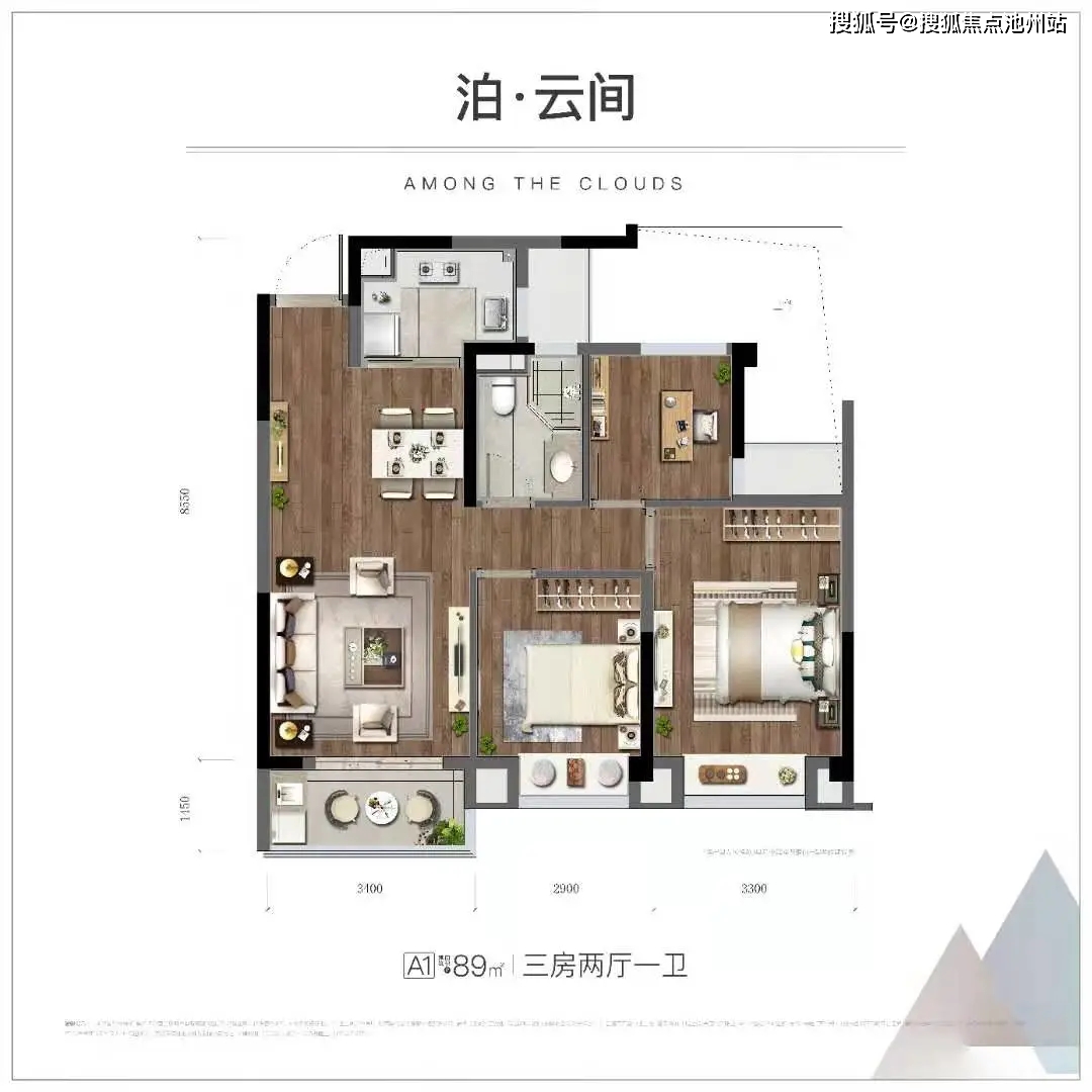 户型:建面约89㎡三房一卫、98㎡三房两卫、107㎡三房两卫,全明户型,南北通透