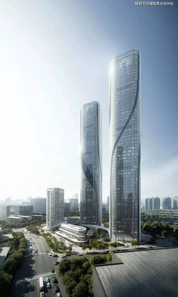设计者对塔楼外立面的表皮进行了竖向线条的处理,包裹上超白玻璃幕墙,创造出动态的外立面效果。建筑造型简约内敛,表皮随着光线的折射而呈现出极具流动性的线型变化,呈现钱塘江潮汐的涌动与起落,形成丰富的立面韵律,仿佛是一组节律变幻的城市音符,以回应“钱江潮涌”的独特的潮汐现象。目前,项目已完成建筑外墙的多段典型视觉样板的确认。