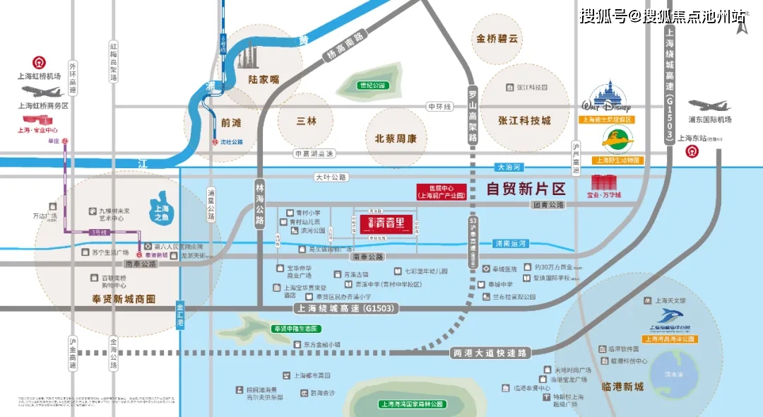 交通方面:项目受到临港自贸区和奉贤新城的双重辐射,北侧又有浦东张江科技城,未来将有大量产业人口导入;基地邻近S3沪奉高速,未来通车可自驾到达张江科技城;距5号线奉贤新城站约11公里,可自驾也可搭乘奉浦线BRT直达地铁8号线沈杜公路站。