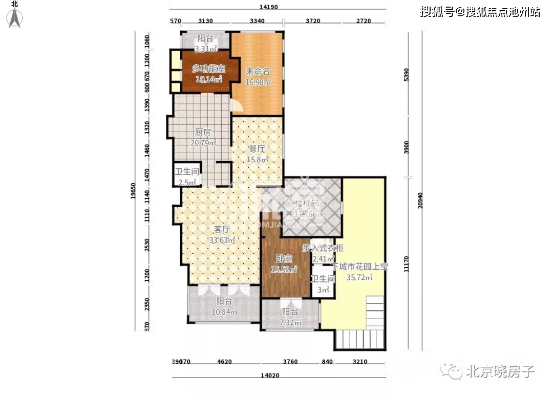 2. 三面采光,主仆分离,动静分区,卧室套间设计,舒适便捷