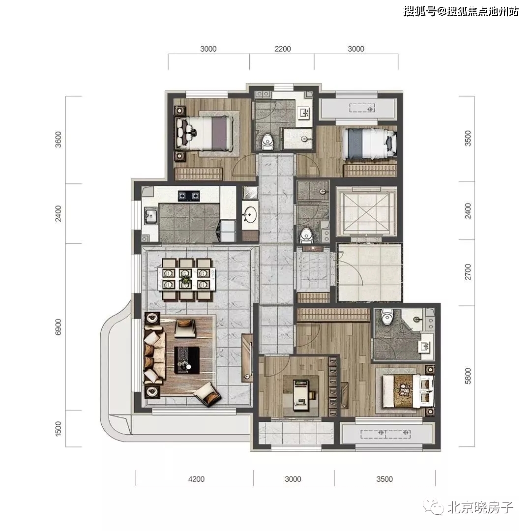 中海首钢·天玺147平米四居三卫和122平米三居八窗户型来看。