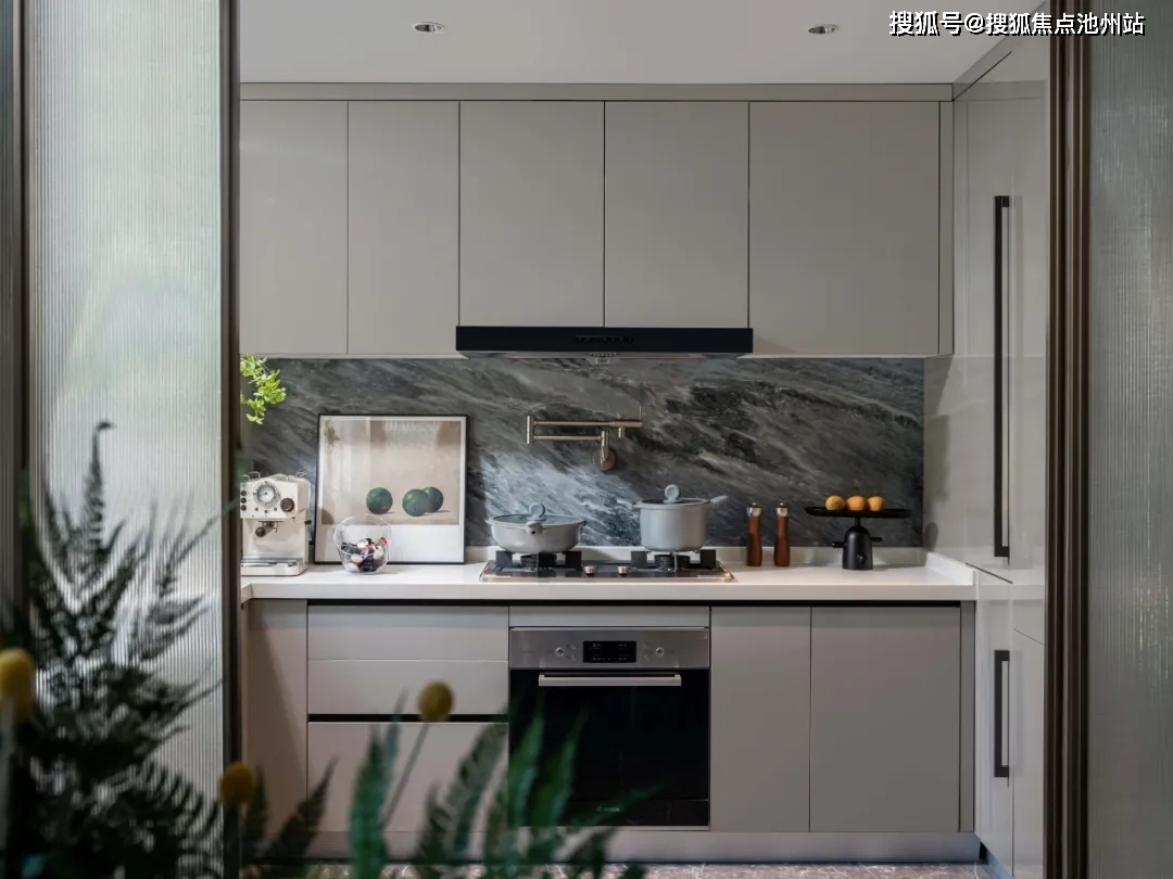 选用石材地面、木饰墙面,厨电又有唯宝、博洛尼、汉斯格雅、大金等国际大品牌加持,精装配置对标豪宅,处处充满精致感与高级。