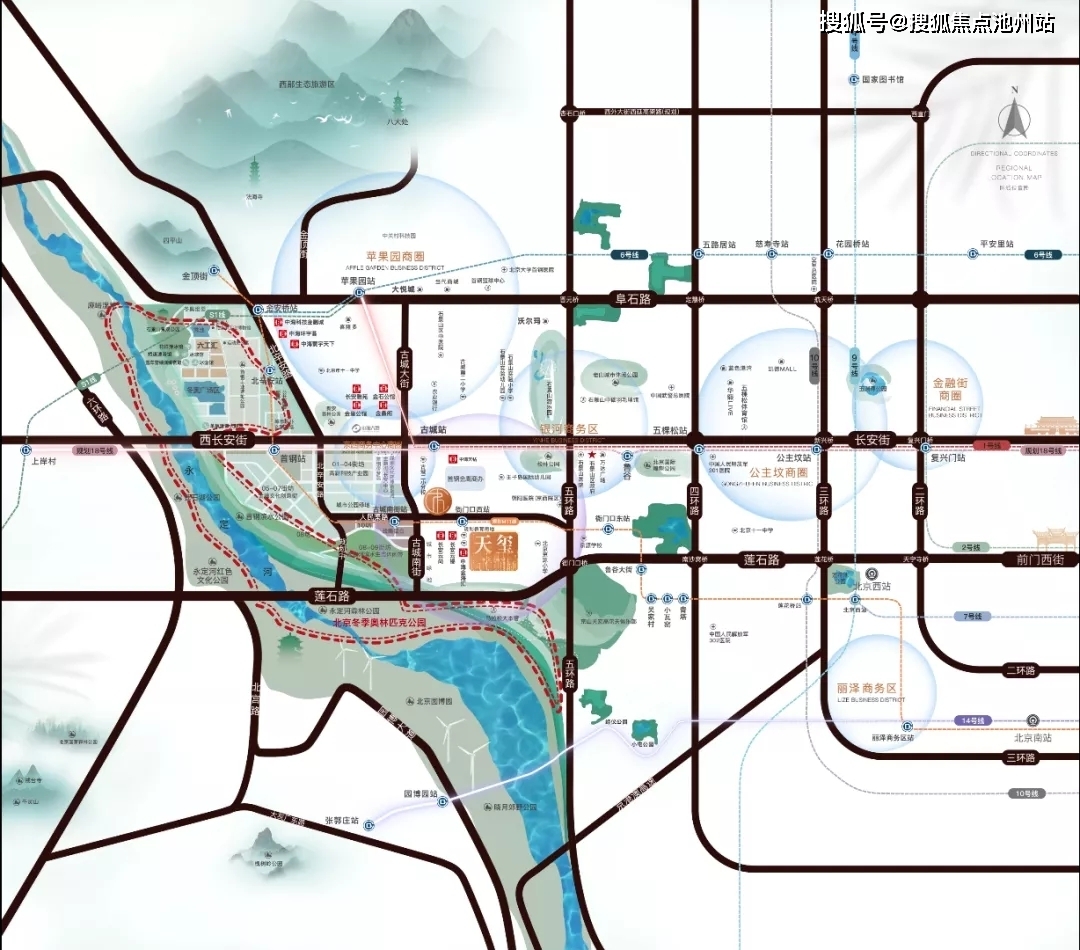项目南侧紧邻莲石路,20分钟到达西二环,北侧1.5公里至长安街,直达天安门,北侧3公里至阜石快速路,通往四环定慧桥,三横主干线,双快速路护航,交通便捷。