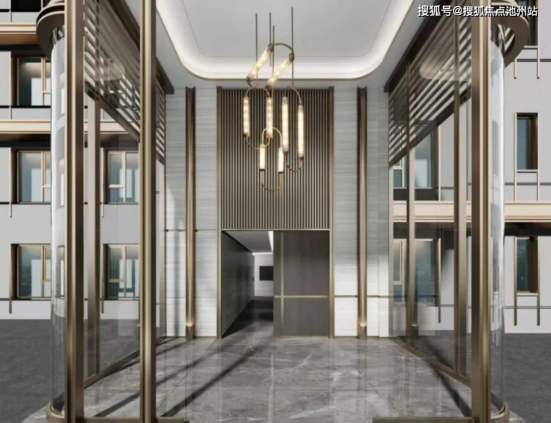首层大堂用材设计讲究,石材、铝板与金属之间发生碰撞,充满了尊贵感。人脸识别,门禁控制台、访客呼叫,对开的玻璃移门,于无形中彰显业主的身份地位。