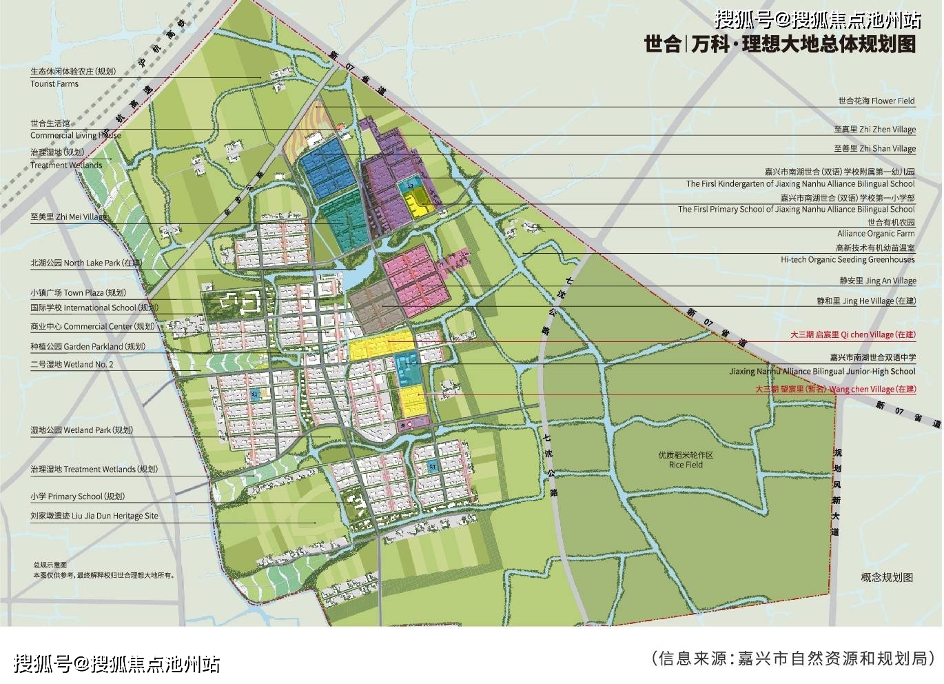 中国长三角 理想人居地 世合万科理想大地,整体范围约11平方公里,涵盖「绿色农业」「健康银发」「文化教育」及「田园小镇」四大板块。