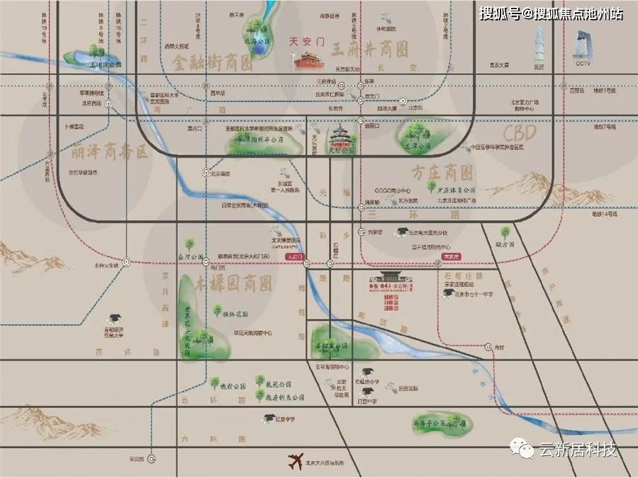 交通配套:三环,四环,榴乡路,南中轴路,广渠路,长安街等构成两横四纵三环线主道交通网络,地铁5号线、10号线、亦庄线,三线交汇,宋家庄站30分钟可达新机场。