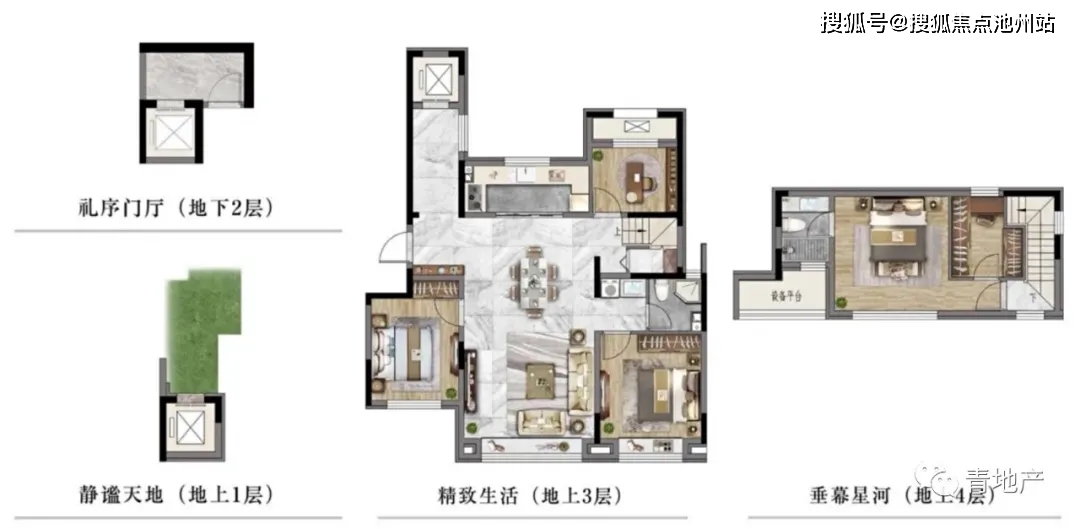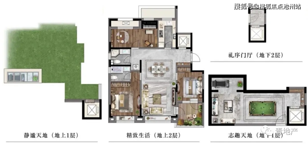 下叠产品地上三间卧室,地下空间面积不小,可以根据需求设计成娱乐、休闲空间。相比较而言,地下一层比地下二层更受购房人欢迎,实用性和性价比都更佳。