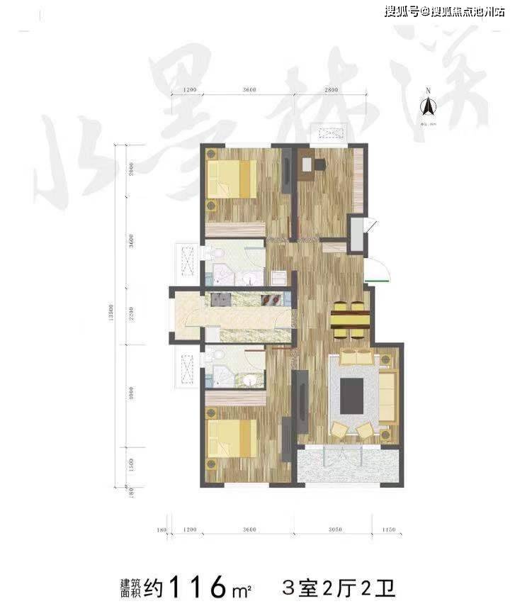 户型:板楼11层建筑面积约 88㎡两居、116㎡三居