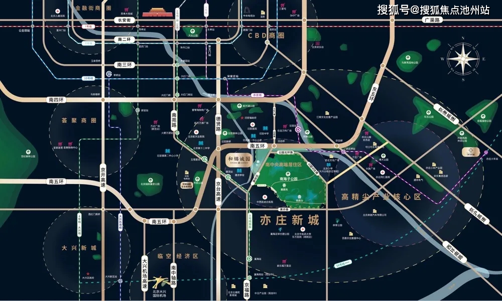保利绿城·和锦诚园项目东侧,紧邻北京南海子郊野公园。南海子是北京四大郊野公园之一,也是北京市较大的湿地公园,历史上是辽、金、元、明、清五朝皇家猎场和明、清两朝皇家苑囿,如今规划占地面积约400公顷。南海子公园周边,已落成数个改善社区,以南海子为中心的“公园改善住区”正逐渐发展成熟。