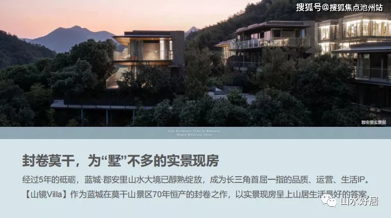 江南排名前列名山,莫干山麓避暑胜地!业界标杆之作,蓝城排名前列现代山地产品项目,莫干山境内罕有可售70年私产,引领现代国际化生活方式小镇新风潮。