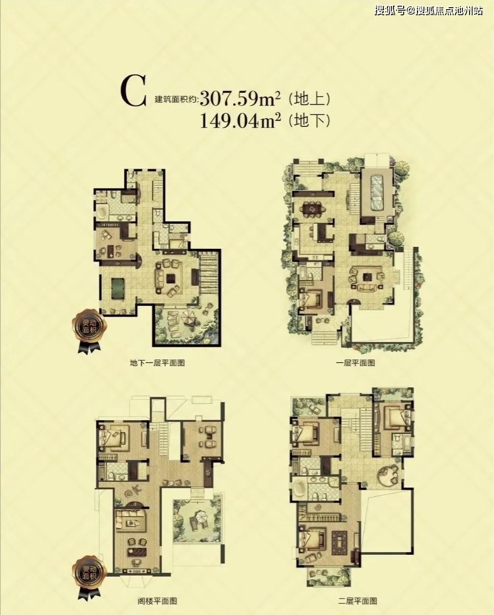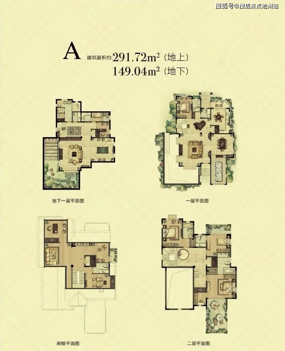 英伦独栋:建面约291-320㎡(地上2层,地下1层,花园约200-400平米,阁楼地下室约200-250平米)均价5.2万,总价1500-1780万