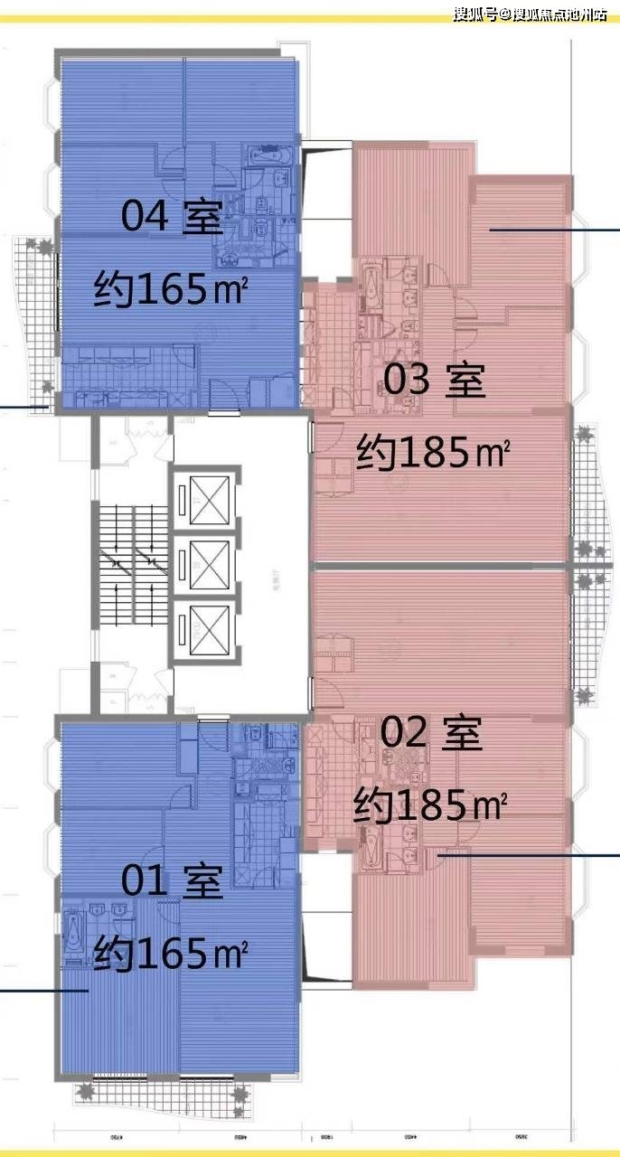 2:165平/185平户型,均为3房户型,房型正气,面宽6米,大阳台,看新天地/太平湖/陆家嘴景观,视野优质,可看到陆家嘴三件套