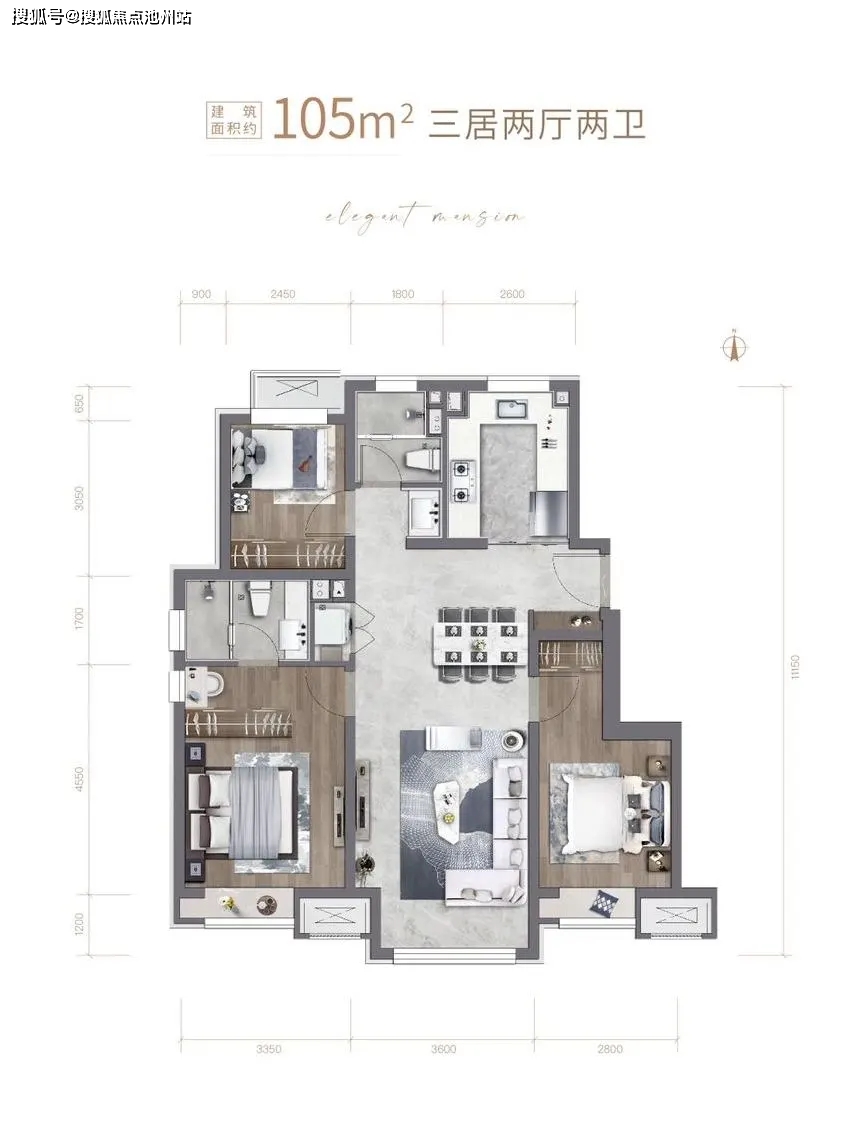 洋房户型(90㎡三居,105㎡三居,120㎡四居)