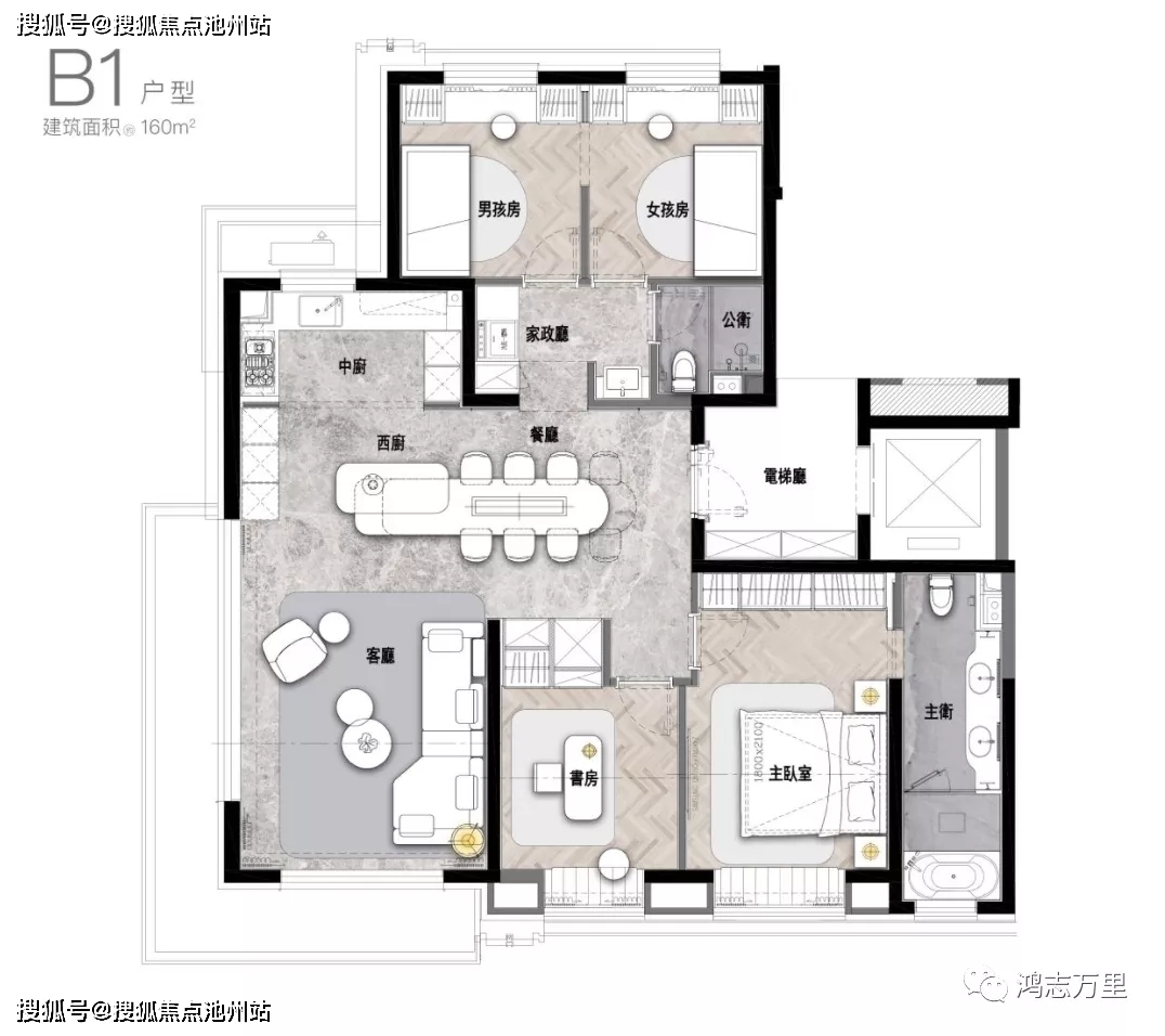 户型面积:140-160-180㎡