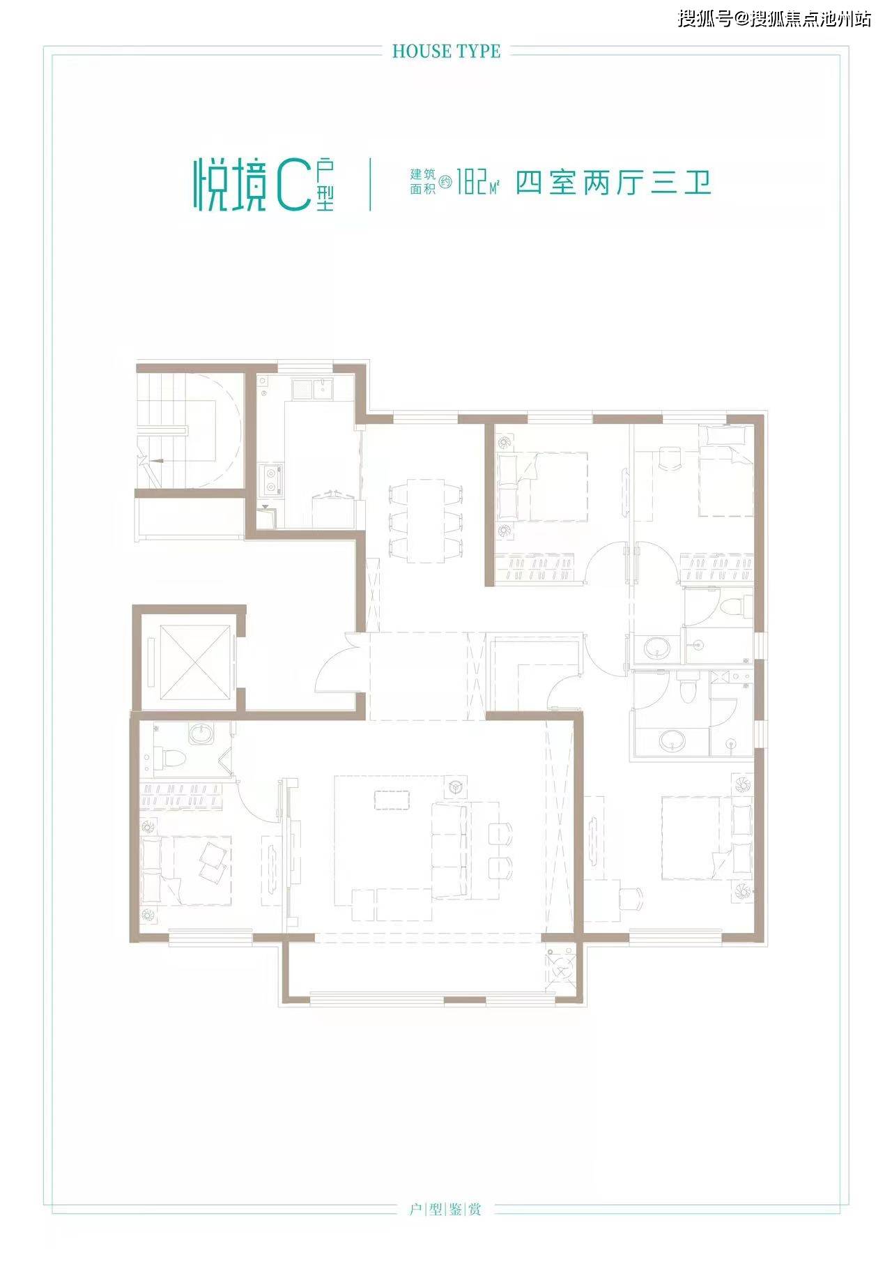 182㎡ 功能性四居,户型方正通透,豪华主套卧,兼具舒适与隐私。1300万左右