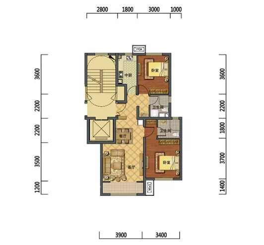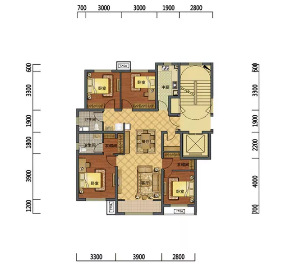 户型南北通透,南北各一个卧室,主卧带独卫,客厅有个阳台,两个卫生间,均为明卫,相对89的小三居,这样的两居住起来会更舒适。130平四居可以说是很经典的一个户型了,南北通透,四个卧室基本在四个角,互不干扰,主卧室独卫套间,有衣帽间;餐客一体,空间更大,明厨明卫,就是厨房进深稍微有点长,不过也不是问题,整体看来是个不错的户型。
