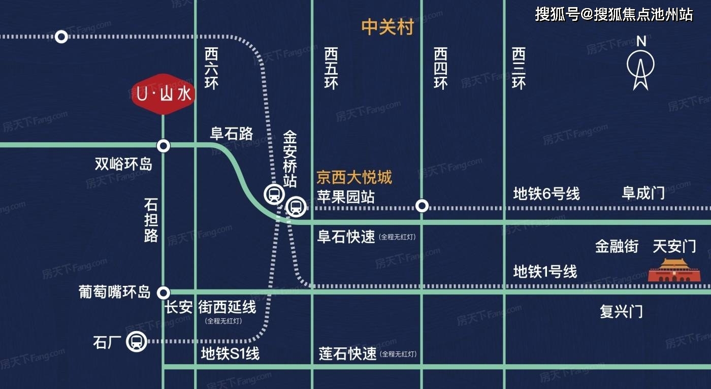 项目周边路网四通八达,距离西六环直线距0.7km、阜石路直线距离约1km,长安街西沿线直线距离4km,距离天安门仅22公里,阜石路、长安街西延线、莲石路、六环路、五环路、四环路、滨河路构成三纵四横主干道,全程不收费。
