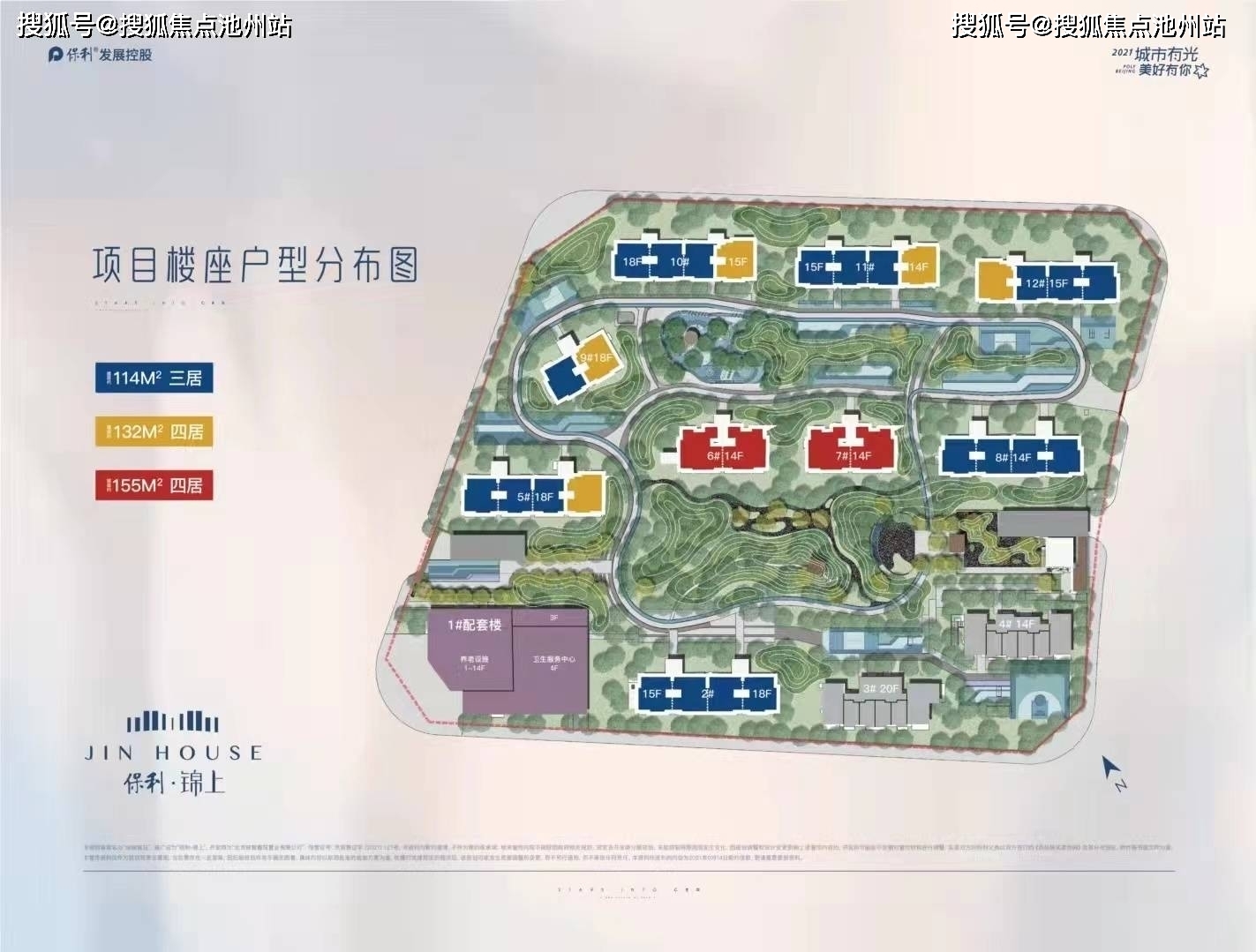 保利锦上共规划了11栋住宅楼,商品住宅9栋,层数为14-18层,两梯两户设计,总规划470户商品住宅,楼间距在52-73米之间,属于纯改善社区。