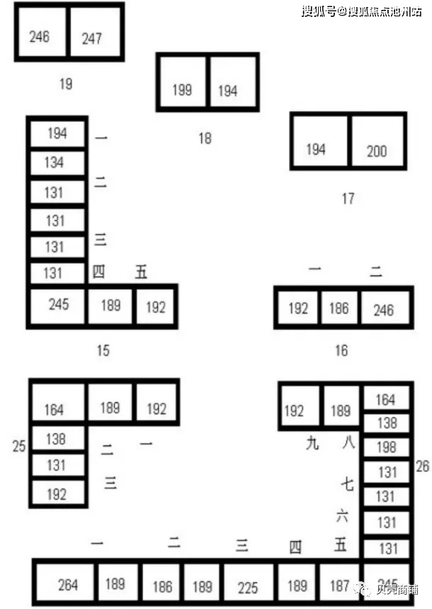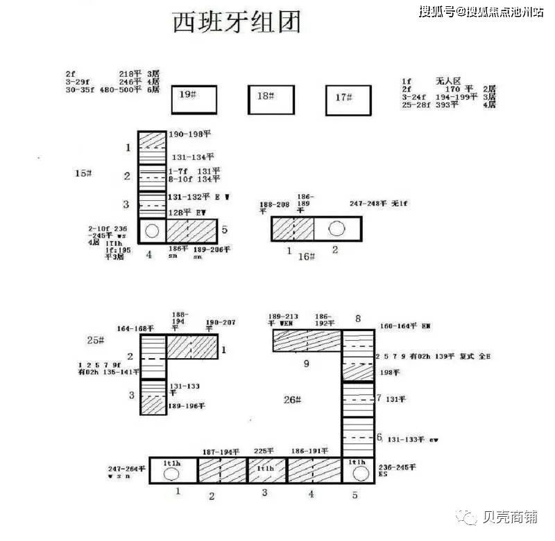 西班牙组团15-19,25,26号楼的横切面图