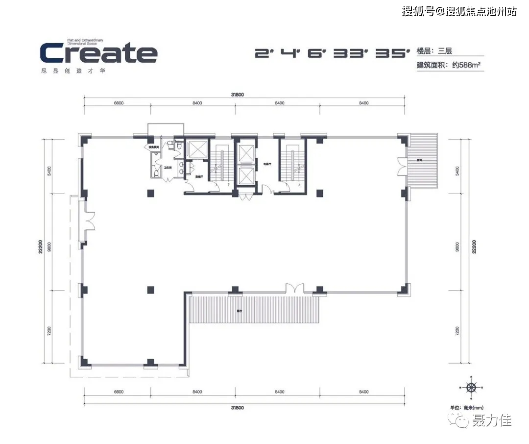 宽厅阔景:约33m大面宽、3.72/4.5m层高、360°全景落地窗
