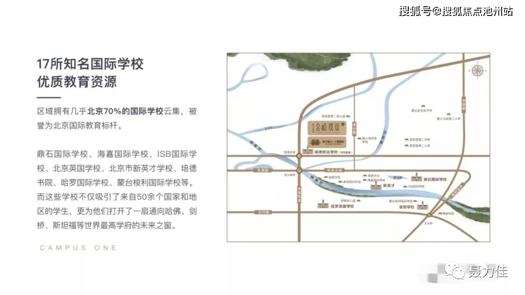 教育配套:占全北京70%的国际学校资源,全国排名前三的国际学校,中央别墅区占据了两个(ISB 和德威)。区域内有知名的鼎石国际学校(胡润4),海嘉国际学校,ISB 国际学校(胡润2),英国国际学校,新英才国际学校、北京君诚国际学校、伊顿双语幼儿园等等,吸引了全北京乃至全国越来越多的高端人群在此置业方便孩子上学。另外区域内公立名校环绕,南侧北师大附中,东侧北京实验二小,北京四中分校,可以满足不同年龄段孩子的教育需求。