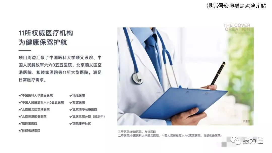 医疗配套:周边汇集有大约10余家医院。顺义友谊医院,北医三院,空港医院,王府医院,清华长庚医院,顺义区医院,顺义中医院,和睦家医院;其中友谊医院顺义分院,为区域内较大的三甲公立医院,占地24万平方米(大概床位数量1500个)位于顺义机场北线与天北路交汇处,预计2021年建成,同时,西侧是北京体量较大的北大国际医院,占地面积55万平米,相当于2个友谊医院那么大,床位1800个另外,项目北侧规划中的北医三院顺义院区,已选址于赵全营镇的板桥核心区,西临京承高速,南侧昌金路,东侧天北路。