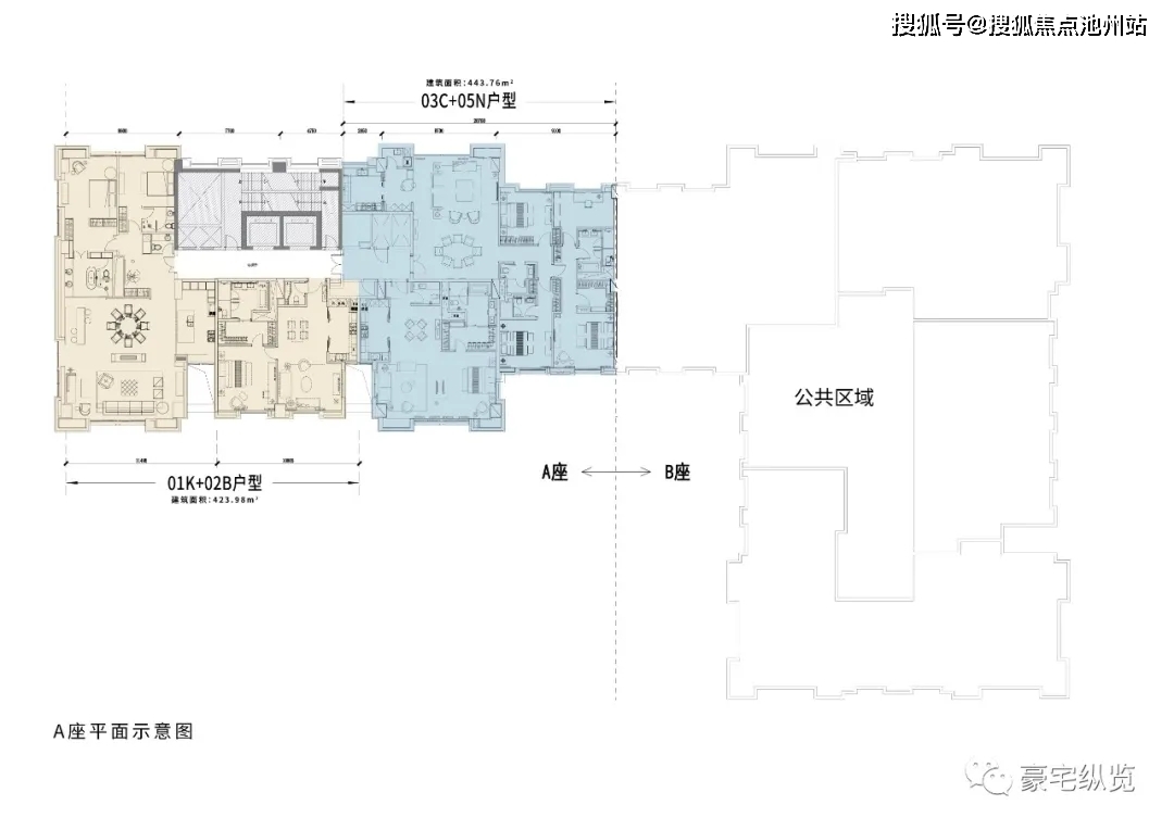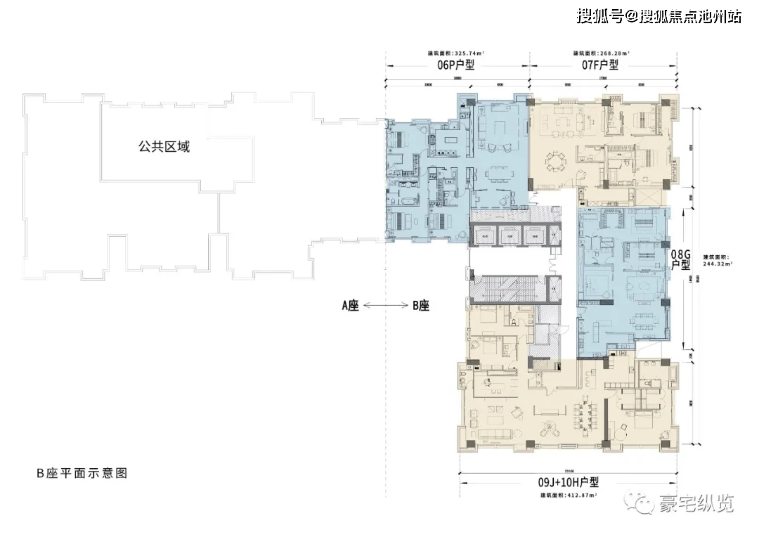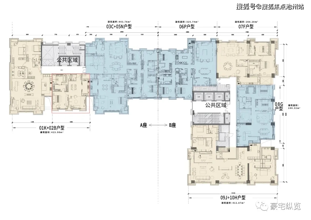 B座户型的话是单套面积较大的是325平米的大于325平米的都是两个房本儿,比如说是423平米的和443平米的,这两个户型都是两个房本。