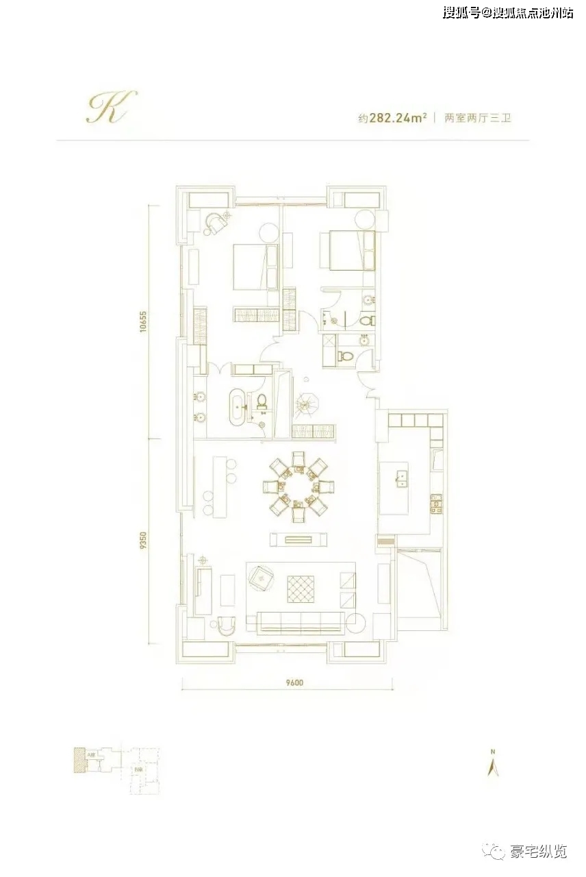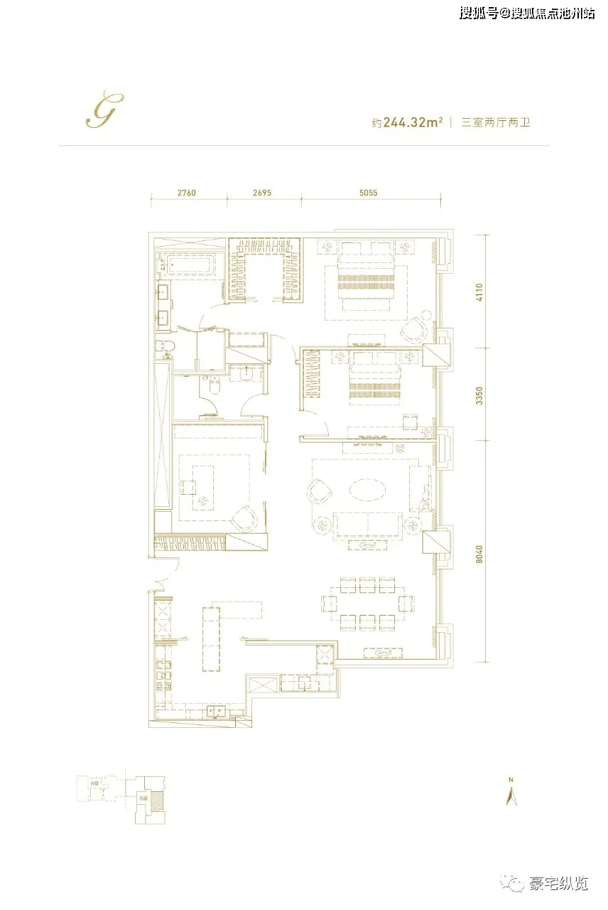 北向看金宝街,325平三居室,南向2个卧室,居住舒适度很高