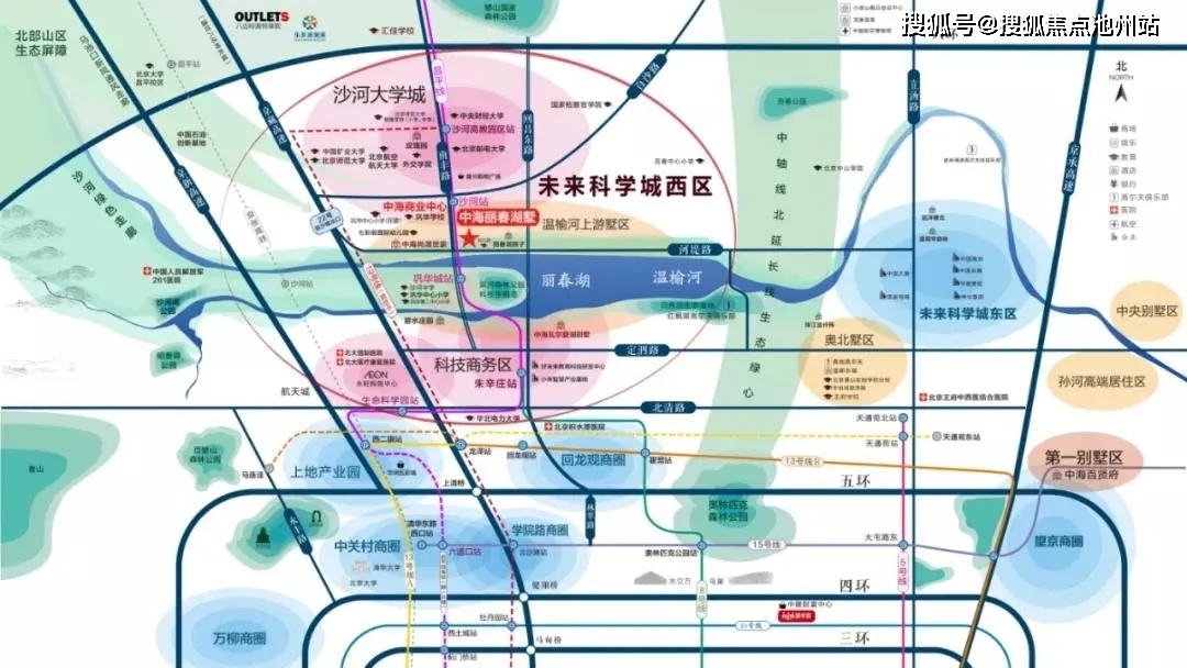 中海丽春湖墅中海丽春湖墅处在未来科,学城西区的科技商务区和沙河大学城交汇处,地铁昌平线沙河站南600米。