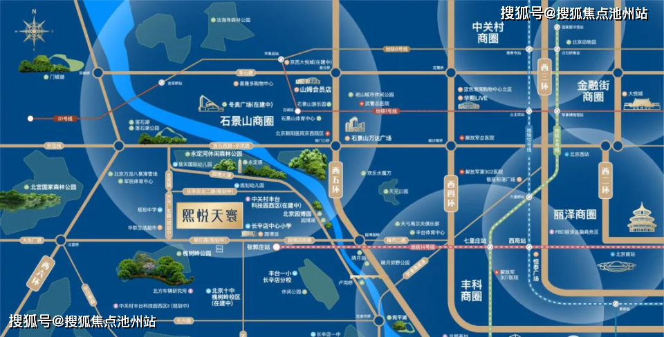 熙悦天寰项目位于石景山区与丰台区交汇处、承接首钢(距离4公里)、及中关村丰台科技园西区的双区规划利好、由金茂、保利、首开三大国企/央企开发商、联袂打造的西五环墅质精装洋房、园博园之畔(距离2公里)、区域绿化率超过50%、是真正的公园地产、销售单价相比周边其他项目有明显优势、未来升值空间较大