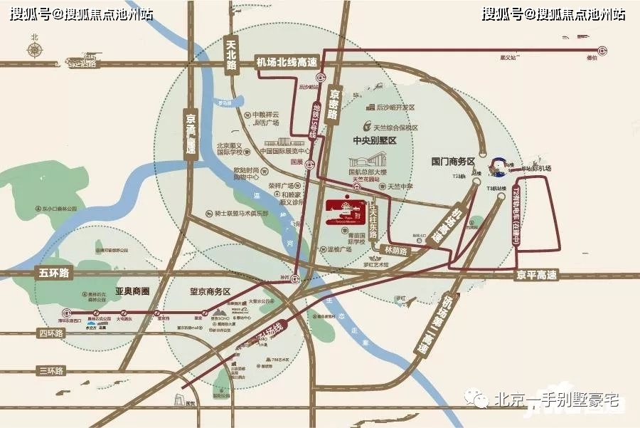 项目位于北京传统富人聚集地中央别墅区内,南侧毗邻温榆河,北衔主干道天北路。区域内密度极低,自然环境优美;紧邻首都机场、靠近燕莎商圈、丽都商圈、使馆区等地。以极其优越的条件,成为北京具投资价值的区域之一。