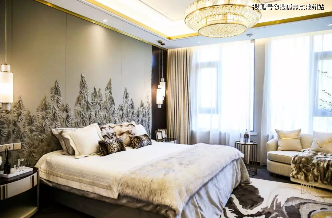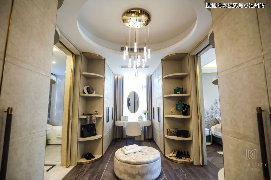 主卧面积整体达到57平,18平衣帽间→起居空间→卫浴间,层层递进,明朗通透。